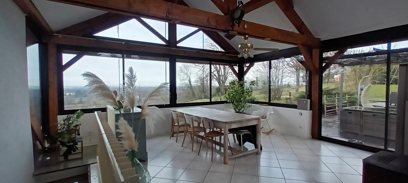 Dès l’entrée, vous serez séduit par la luminosité et l’ouverture sur l’extérieur. La propriété propose deux chambres, dont une superbe suite parentale, et surtout une magnifique véranda de 35 m² faisant office de véritable pièce de vie, tournée vers un panorama à couper le souffle.